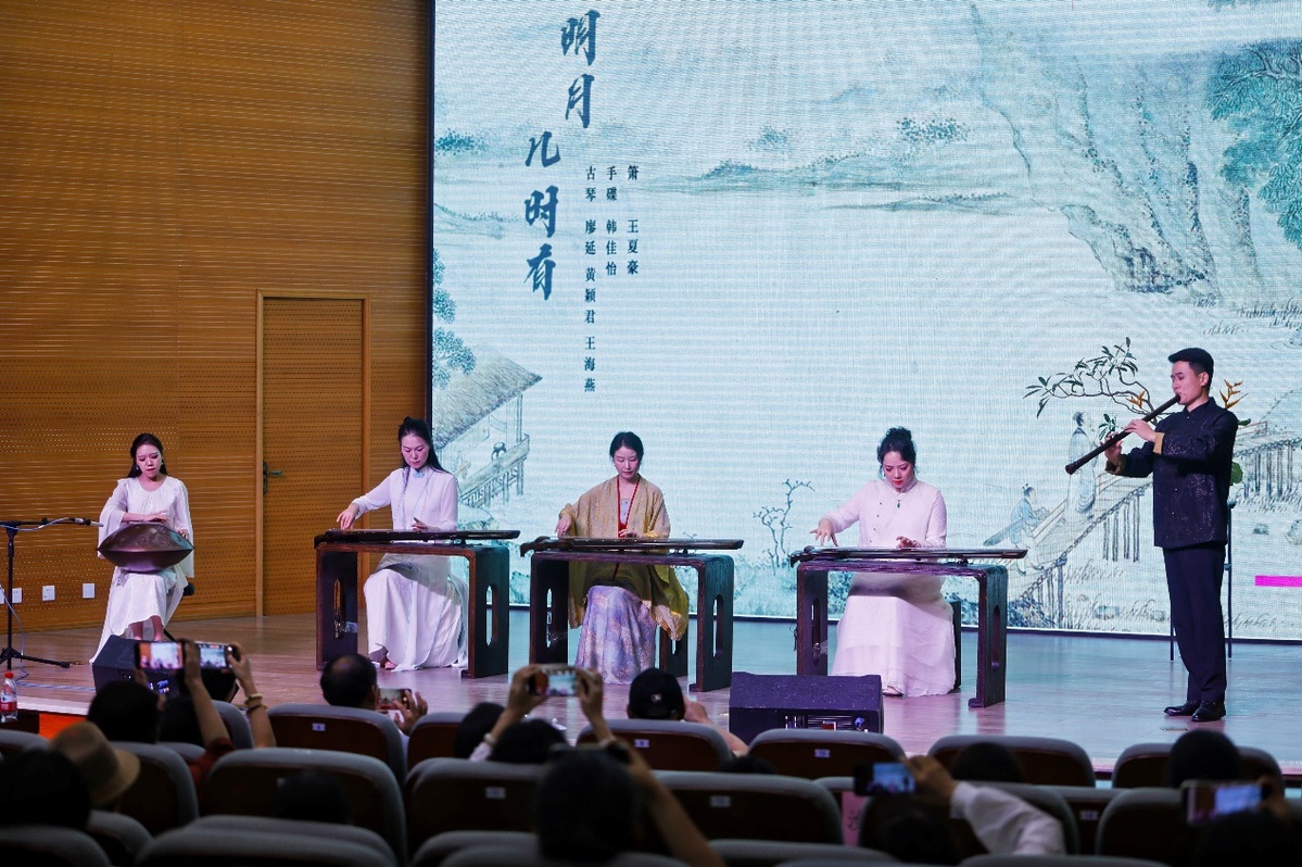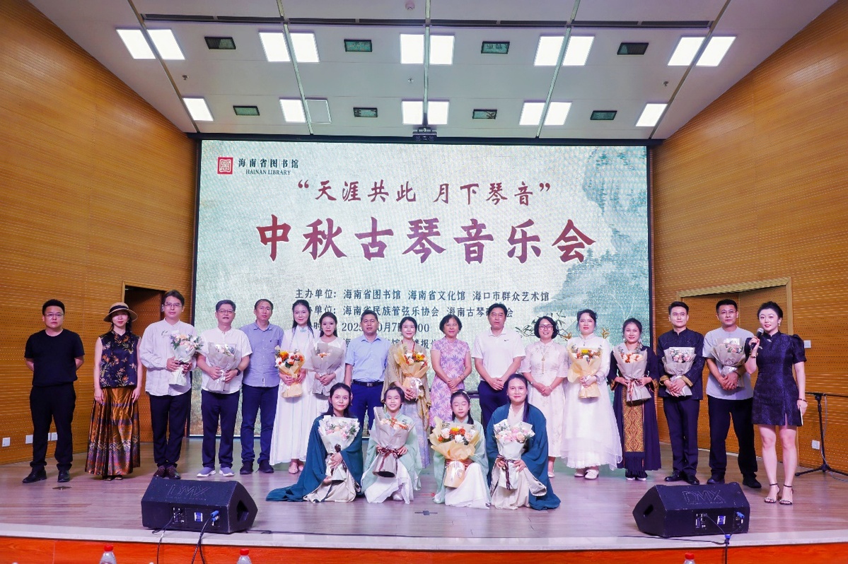 10月7日,“天涯共此 月下琴音”中秋古琴音乐会在海南省图书馆举办。这场由由海南省图书馆、海南省文化馆、海口市群众艺术馆联合主办,海南省民族管弦乐协会、海南古琴研究会共同承办的文化惠民活动,以非遗古琴为核心,融合多种艺术形式,为观众带来一场兼具传统韵味与时代气息的视听盛宴。