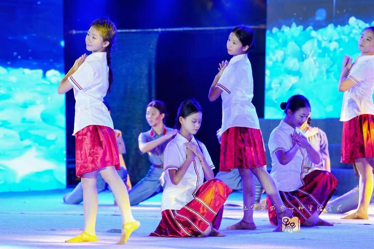 夜幕下的文化公园广场灯火璀璨,“逐梦琼崖 共谱华章”音乐舞蹈史诗晚会成为活动亮点。晚会以歌舞剧形式,通过“烽火岁月 血色荣光”“琼崖根脉 绿水青山”“山海新程 逐梦未来”三大篇章,生动呈现多元内容。《为了万家灯火》《追寻》等节目重温抗战历史,《“黎”想主义》《绿水青山的希望》展现非遗传承与生态建设成果,《AI逐梦》呈现科技赋能学习的新场景,最终以大合唱《世界赠予我的》、歌伴舞《如愿》收尾,引发全场情感共鸣。