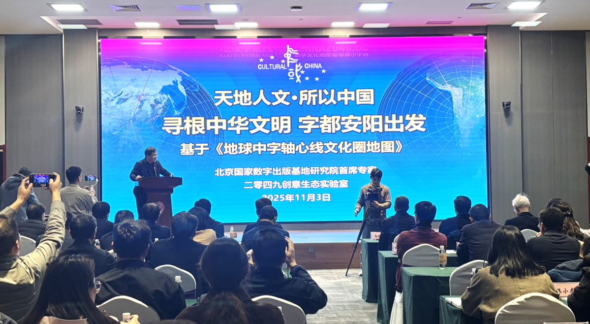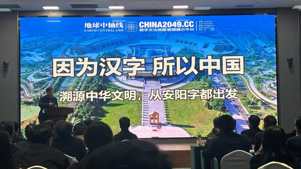 世界创意经济之父约翰·霍金斯中方合伙人、北京国家数字出版基地研究院首席专家苏彤以“寻根中华文明,从安阳字都出发”为题作主旨演讲,分享了二十余年来关于“中字轴心线文化地图”的研究成果。他提出,安阳处于北京、西安、南京三大古都构成的正三角中心点,是“人文地球极坐标的原点”,这一地理与文化双重属性为中华文字的创意发展提供了独特根基。苏彤详细介绍了中华文字创意工程的三大核心项目:“一字千金”世界创意设计大赛、“中的世界”数字艺术博物馆、“9万汉字”系列精神标志构建,倡导以“中”字为核心,通过全球创意激活汉字文化价值,打造沉浸式文字体验。