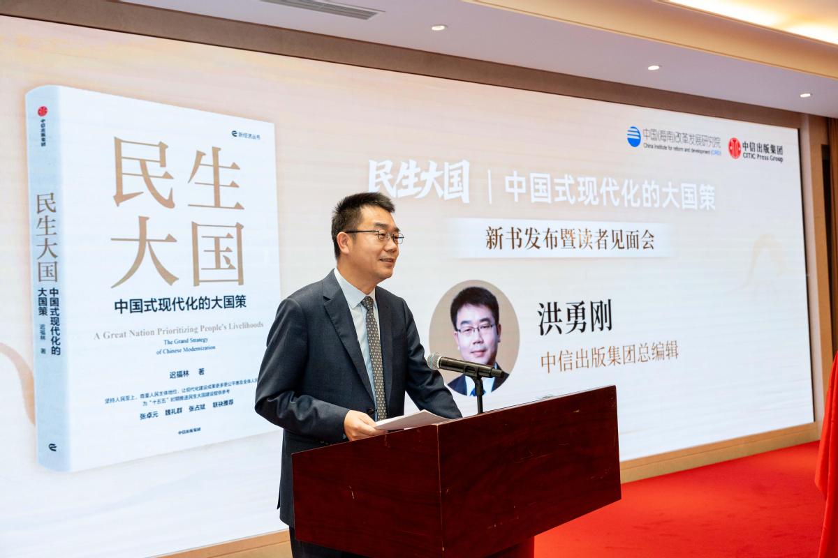 洪勇刚在致辞中表示,迟福林教授结合40余年改革研究撰写的《民生大国》,恰逢其时,既呼应了改革所需,也回应了人民所求,意义重大。该书直面我国社会主要矛盾变化带来的新需求,系统回应如何以民生建设夯实共同富裕根基、如何通过制度创新破解民生领域结构性矛盾、民生建设如何从“基础保障”向“品质提升”迈进、如何实现从“局部突破”向“系统推进”跨越等重大命题,既是对改革开放以来民生建设实践的理论总结,也是为“十五五”规划及2035年远景目标提供战略性智库成果,对于推动中国式现代化行稳致远具有重要现实意义与时代价值。他指出,中信出版集团深感荣幸能够出版这样一部紧扣时代、扎根民生的作品。