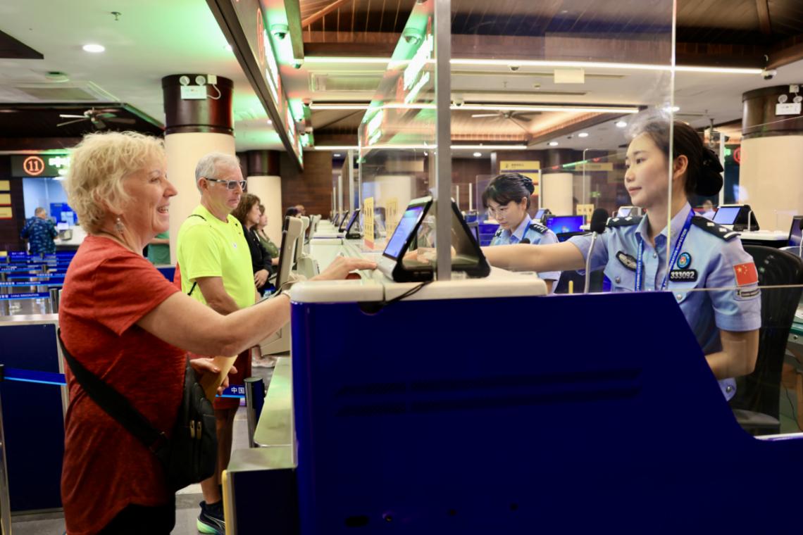 随着海南跨境邮轮旅游热度不断攀升,三亚边检站积极推行外国旅游团乘坐邮轮入境15天免签等便利政策,对乘坐邮轮入境的外国旅客可免予留存指纹生物信息,对乘坐同一航次邮轮入出境的旅客,可免盖入出境验讫章、免填外国人入境卡,这些举措大大缩短了入境旅客候检查验时间。