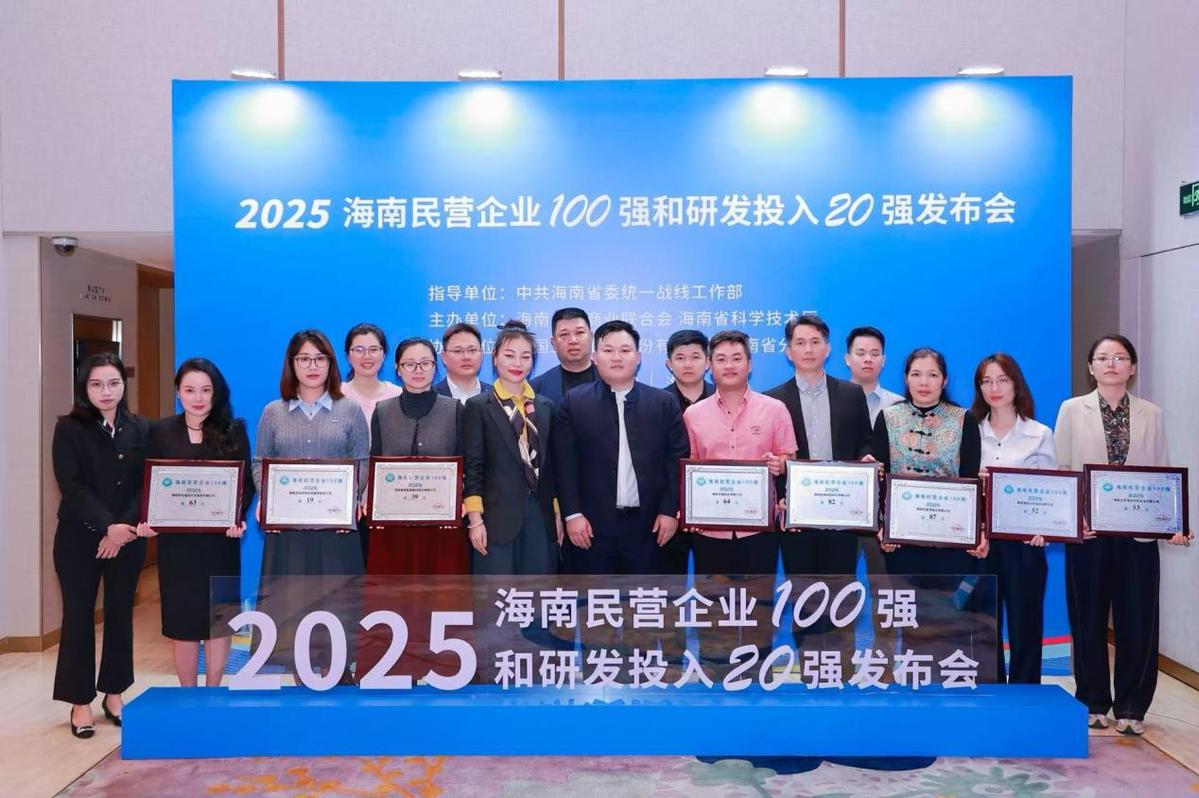 省工商联主席、省总商会会长丁飞出席大会,并为上榜企业颁发牌匾。海南航空控股股份有限公司、阳光人寿保险股份有限公司、海南立博汇新材料有限公司等100家企业入围“2025海南民营企业100强”榜单;海南逸盛石化有限公司、万特制药(海南)有限公司、海南金盘智能科技股份有限公司等20家企业入围“2025海南民营企业研发投入20强”榜单。据悉,这是省工商联连续第8年开展上规模民营企业调研及榜单发布活动。活动前期,按照自愿参与原则,广泛发动全省营业收入超1亿元的民营企业参与申报,并在此基础上联合省科技厅开展研发投入20强排序发布工作。经审核、排序,最终形成榜单。
