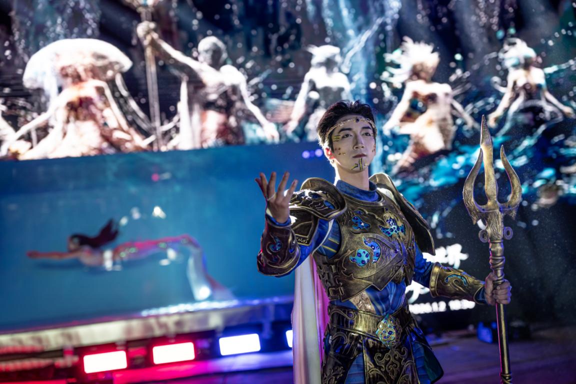 作为本次跨年活动的核心亮点,这场水舞秀由顶级水舞导演郭吉勇团队倾力打造,是全球范围内大型水舞艺术线下展演的首次探索。演出以11米长、5.5米高的LED巨型水缸为核心舞台,舞者在水中克服浮力挑战,闭气2至3分钟完成连续翻腾、大跳等高难度动作,将水下艺术的灵动与现代科技的震撼完美融合。《囍》《水韵洛神》等爆款作品的经典演绎与原创剧目《七海前传》的奇幻呈现,让观众沉浸式感受海洋文化与艺术表达的碰撞,其中《七海前传》与亚特兰蒂斯驻场秀C秀的故事联动,进一步丰富了海洋主题文旅IP的叙事体系。