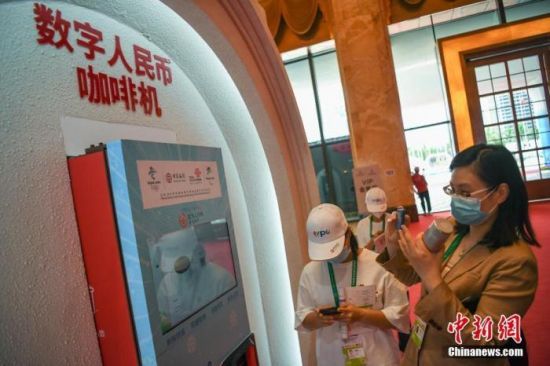 5月7日,首届中国国际消费品博览会在海南省海口市正式开展。现场设置的可使用数字人民币支付咖啡机吸引参观者关注。 中新社记者 崔楠 摄