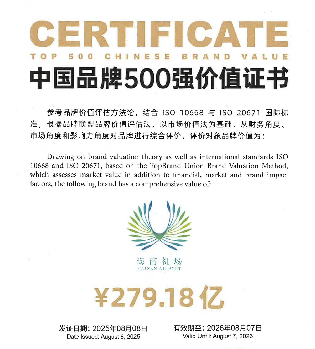 近日,第十九届中国品牌节在深圳举行,现场发布2025中国品牌500强榜单,海南控股旗下海南机场凭借279.18亿元的品牌价值再度上榜,位列第322位,较去年提升10位,彰显出其作为海南自贸港空中门户的品牌实力。