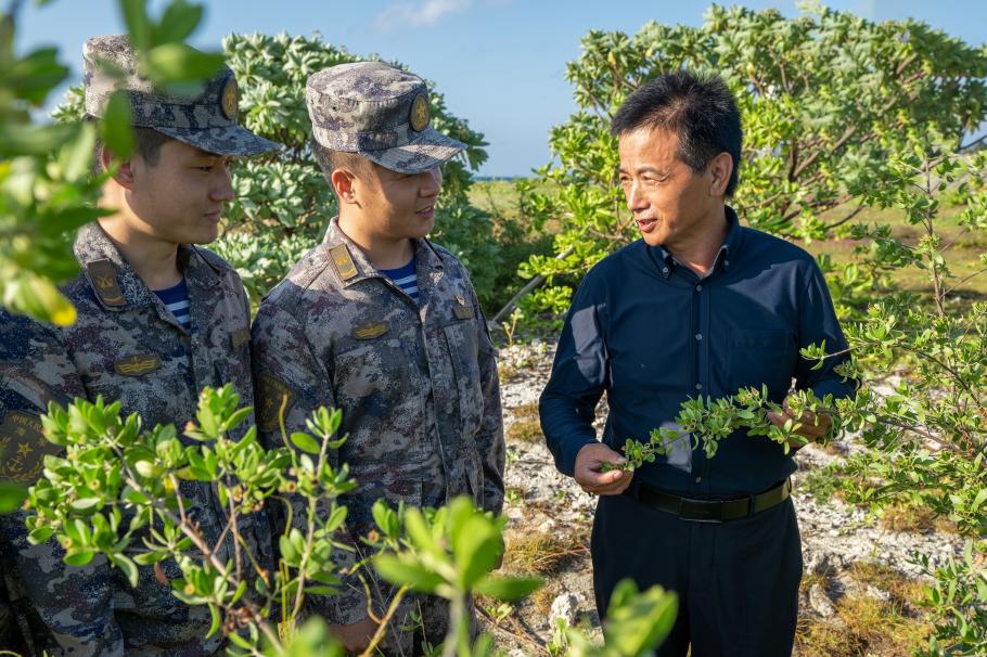 2023年8月29日,驻守南沙永暑礁的某守备部队官兵迎来喜讯:经中国科学院华南植物园检测,礁上一块湿地的地表水与土壤理化性质符合近自然盐沼标准,这标志着曾被称作“海上戈壁”的永暑礁,首次自然生长出植被,生态改善迈出关键一步。