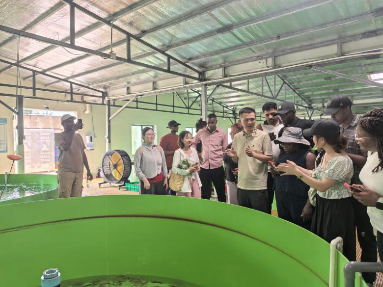 在万宁林兰海水养殖基地,凭借当地得天独厚的热带海洋资源和优质水质,学生们开启了“海洋农业”的探索之旅。基地负责人展示了现代化的全循环水育苗厂房,介绍自动化补水和排污系统,并带领学生参观尾水处理车间和标准化鱼池等设施,让大家看到中国农业“陆海统筹”的多元化发展格局。