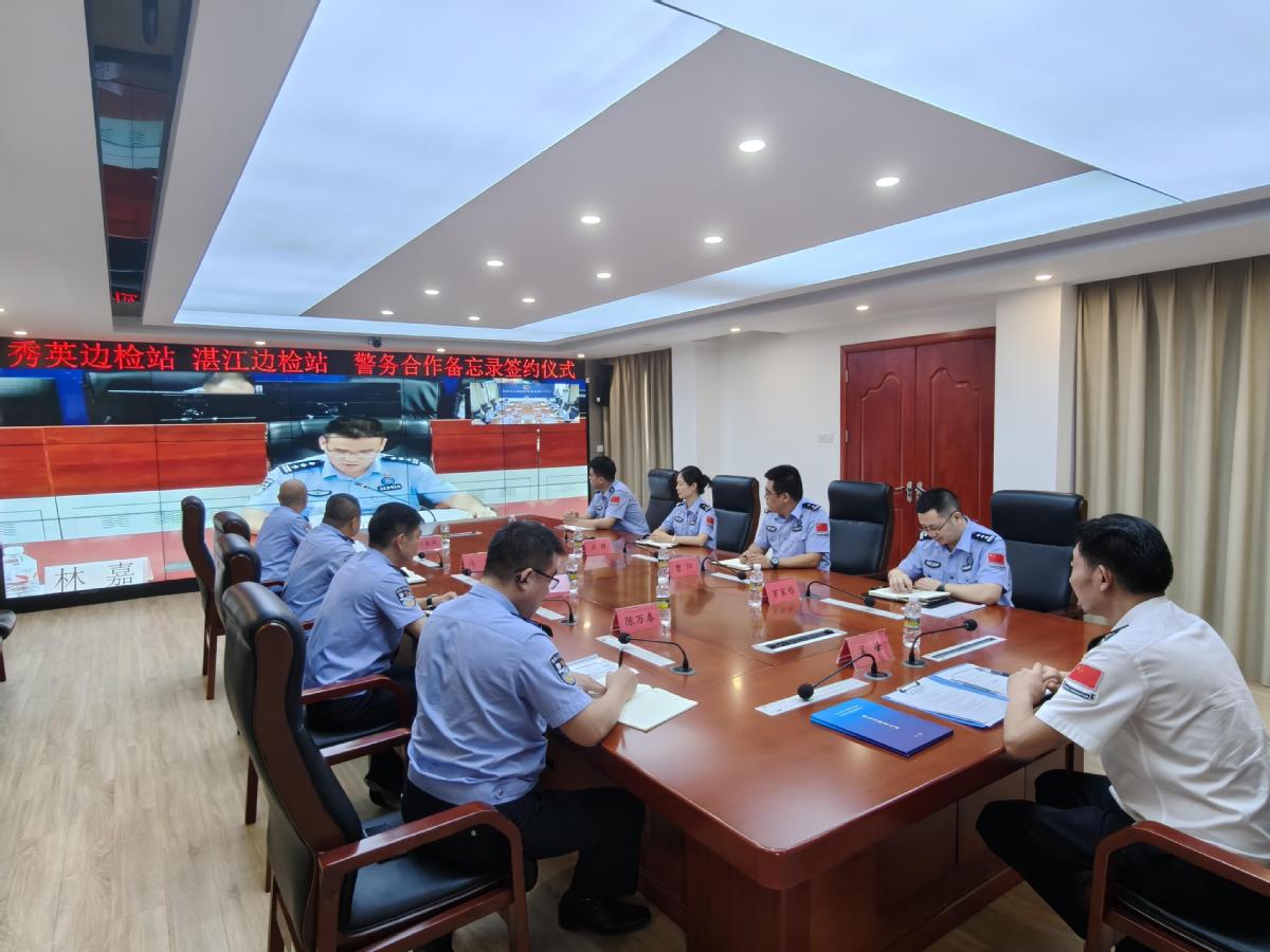 9月29日上午,海口出入境边防检查总站秀英边检站与珠海出入境边防检查总站湛江边检站通过视频会议“云签约”,正式签署警务合作备忘录,标志着两地边检机关在跨区域警务协同领域迈出关键一步,共同构建琼州海峡安全防范协作新机制。