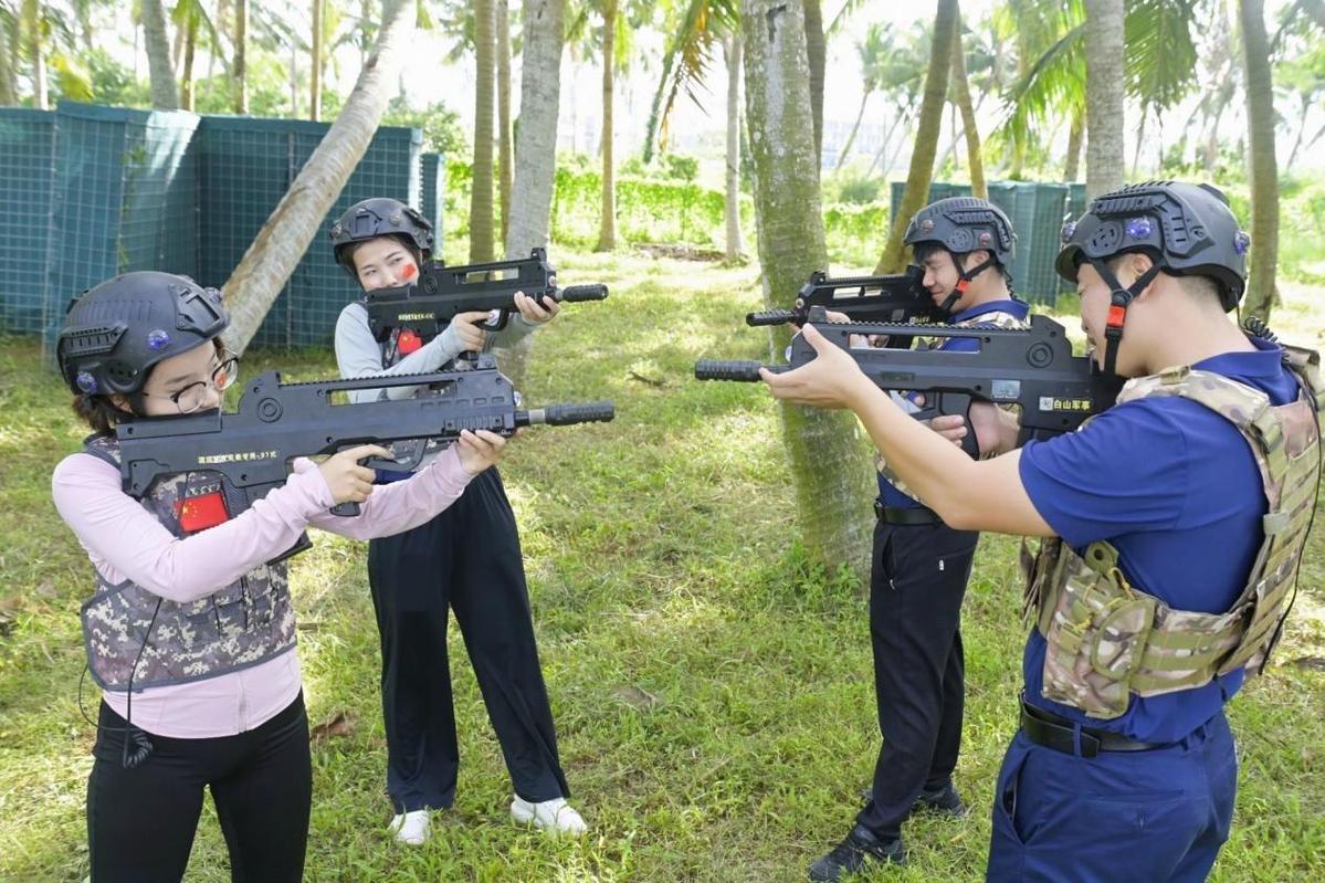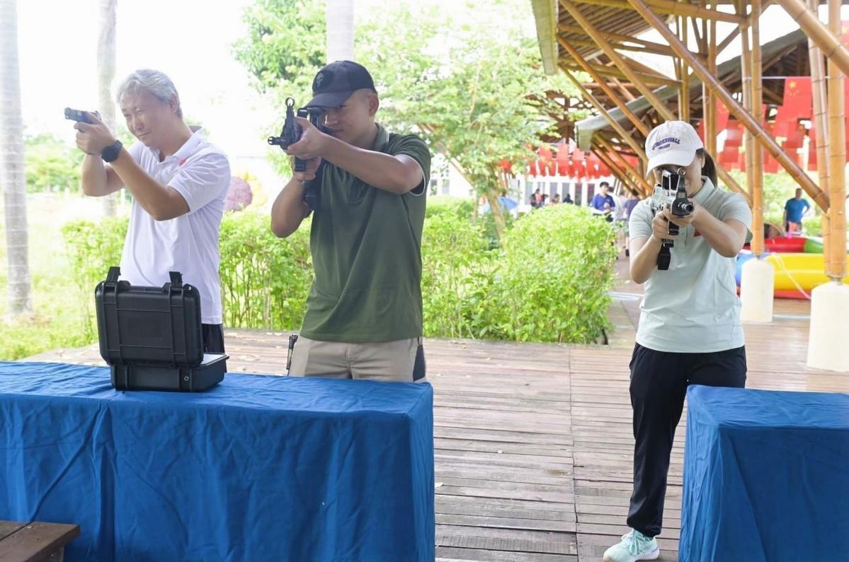 文化传承与竞技体验成为活动亮点。乡愁工坊开设的烧蓝簪子、螺钿簪、水拓漆扇等六大非遗手作体验,成为展示海南本土技艺的重要窗口;丛林战区内,红蓝实兵对抗、胸环靶射击等项目,让竞技爱好者在专业指导下感受团队协作的魅力。