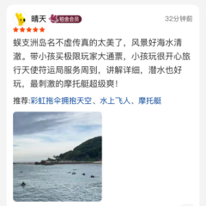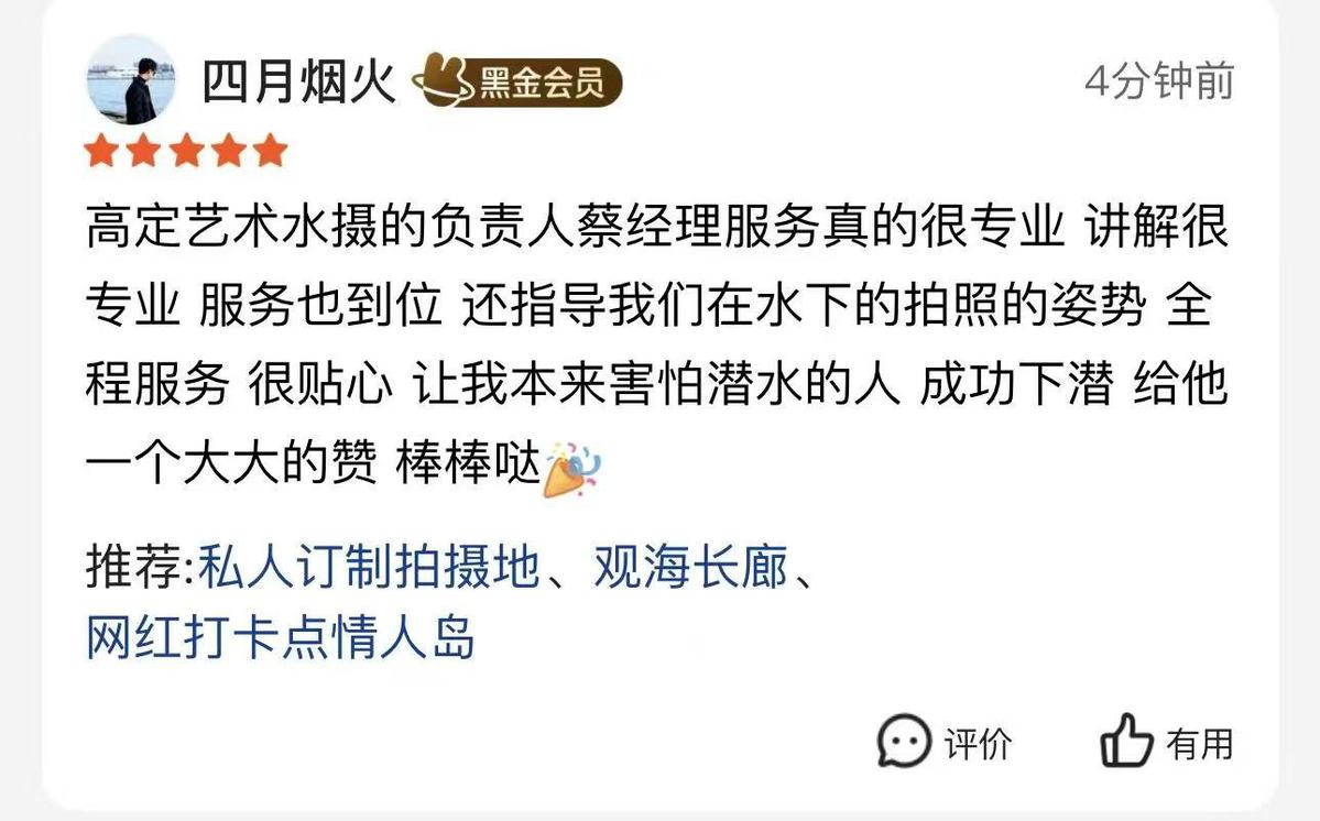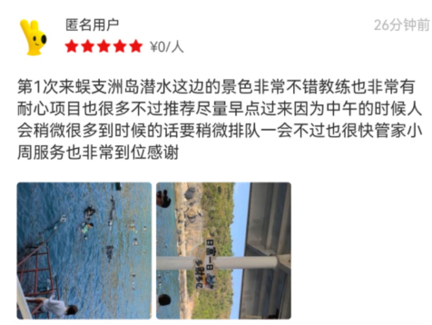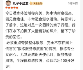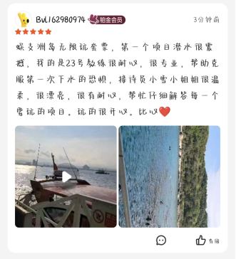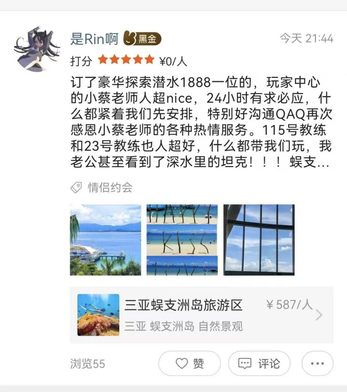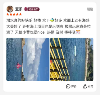 作为“五员”服务载体,“旅行天使”团队提供全流程陪同服务:协助办理票务、定制游玩路线,统筹项目时间。深圳游客送锦旗称赞其“专业高效、热情真诚”,大众点评上也满是好评。抖音平台“蜈支洲岛潜水”话题播放量超5000万次,真实分享见证服务质量。
