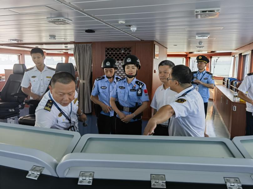 当日上午8时,联合巡航队伍登上海事“海巡03”轮,围绕琼州海峡定线制水域、客滚船核心航线、重要通航航路及海底光(电)缆保护区等关键区域展开全覆盖巡查。行动中,秀英边检站依托闭环管理机制,与各部门协同联动,实时核查水域过往外籍船舶航行资质,确保船舶信息与口岸备案数据精准匹配;同时排查水上交通隐患,重点整治违规锚泊、偏离航线等行为,防范安全事故发生,并对非法越界、违规作业等潜在风险提前预警,有效保障了水域通航秩序稳定。