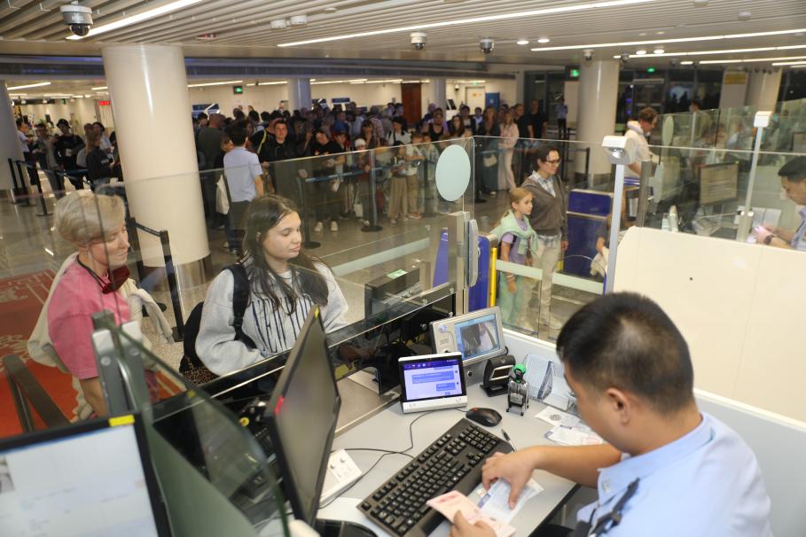 随着首架悉尼航班的落地,来自莫斯科、首尔、吉达、吉隆坡、雅加达的五个航班也相继抵达,短时间内通关人数峰值超过上千人次。为应对客流高峰,美兰边检站加强与航空公司、口岸联检单位的沟通协调,科学部署勤务,全面开启人工查验通道和快捷通道,并强化现场分流引导,全力保障旅客顺畅通行。
