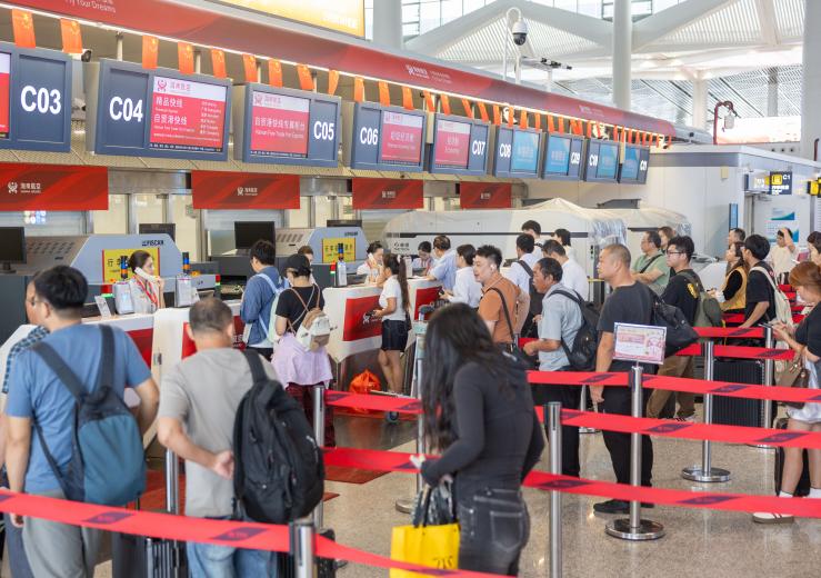 为保障旅客顺畅出行,海南机场集团全面加强一线服务力量,增开值机柜台与安检通道,有效缩短旅客排队时间。同时,在值机、安检、登机等关键环节增派志愿者,提供全程引导与便民服务。