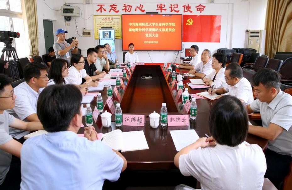 9月28日上午,海南师范大学生命科学学院海龟野外科学观测站党支部第一次党员大会在龙昆南校区生科楼举行,标志着该观测站党支部正式成立。校党委书记许玫、党委副书记符刘才出席大会,生命科学学院领导班子成员、三沙市海洋保护区管理局代表及观测站师生代表列席会议。