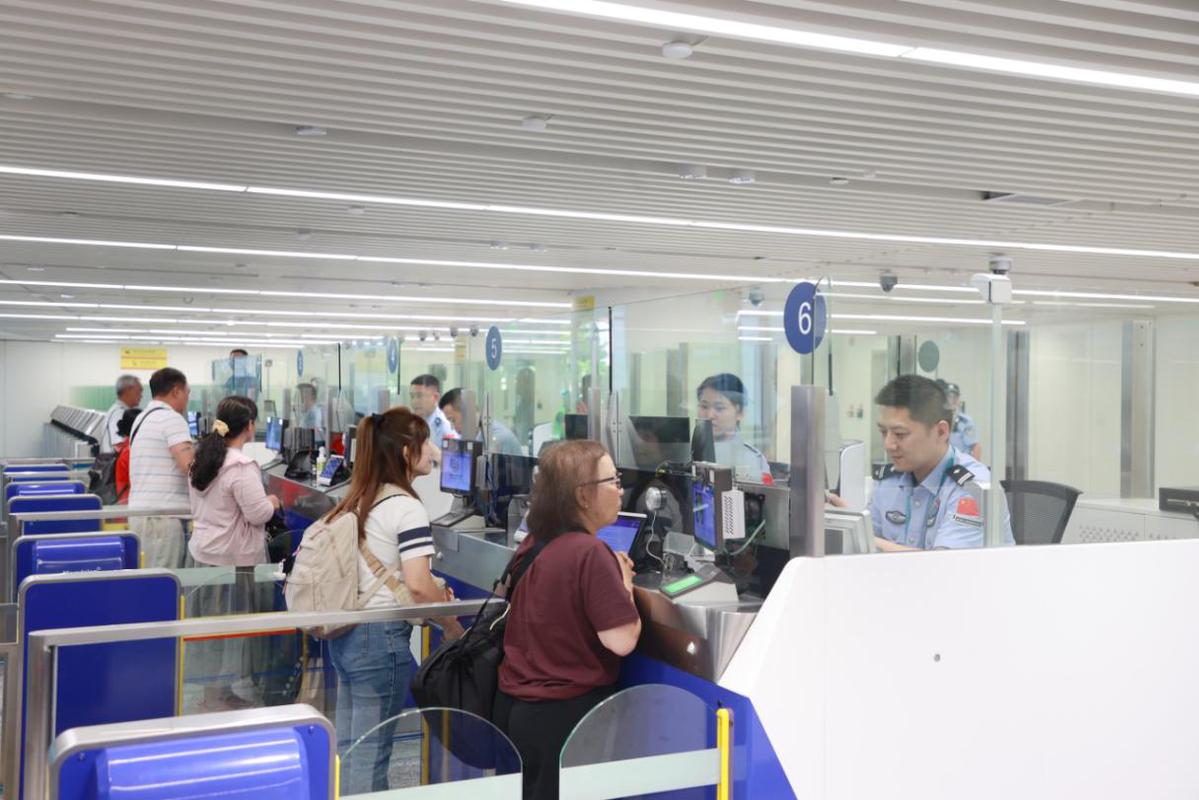 (美兰出入境边防检查站验放入境旅客 丛高摄)