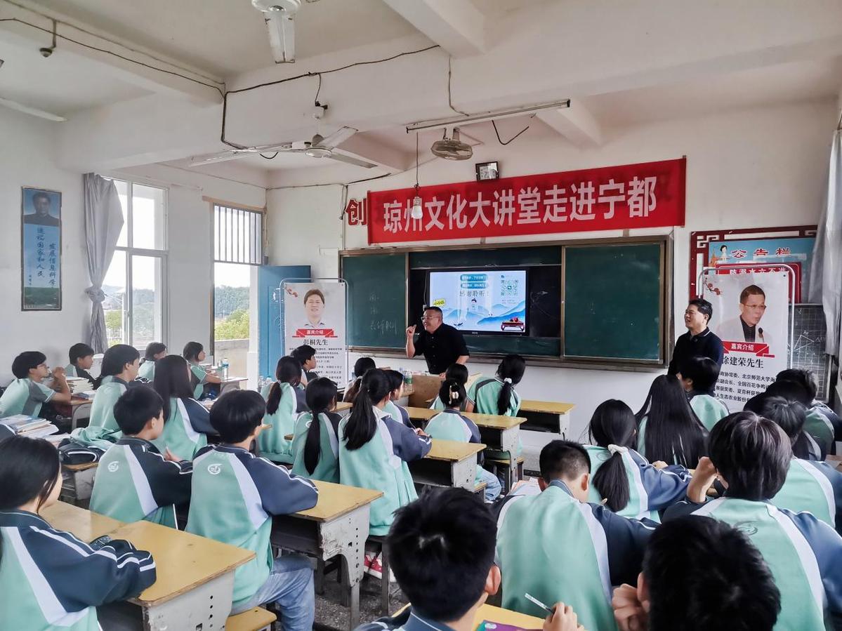 10月29日,重阳佳节之际,琼州文化大讲堂第60场活动在江西省宁都湛田中学成功举办。本次活动以“阅读点亮人生”为主题,由海南作家彭桐与朗诵艺术家徐建荣联袂主讲,同步举行了家和公益图书馆揭幕仪式,将5000余册爱心图书送至乡村,架起一座跨越琼州海峡的文化桥梁。