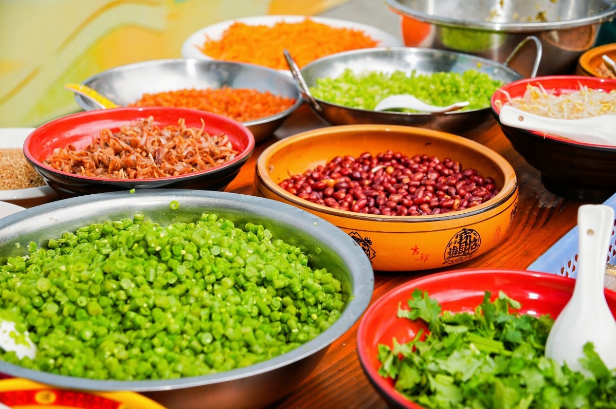 米烂是一种以粳米为主料的传统米线,其名源于“将米磨烂成浆”的关键工序。制作时需选用饱满洁白的优质珍珠米,经井水长时间浸泡,再以石磨细碾成浆。随后滤水、蒸团、捶打,最后借助传统木具压成细线,在沸水中定型煮熟,过冷水后即成爽滑米烂。其风味精髓更在于丰富的配料体系:“大料”包括蒜头油、肉干丝、花生、鱿鱼丝等;“小料”则有葱花、辣椒、酱醋等提味。尤其是蒜头油的熬制,火候分寸之间,决定香气的浓淡与层次。