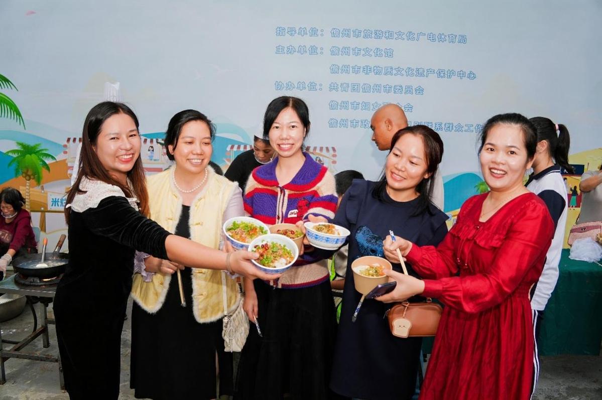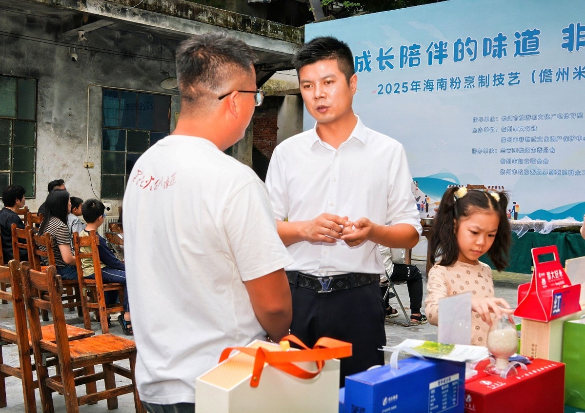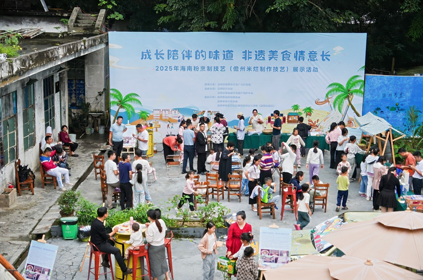 活动现场设置多个互动区域,让市民游客全方位沉浸式感受非遗魅力。在“人人都是美食家”品鉴区,地道儋州米烂引来阵阵赞叹。为品尝这一风味,美食爱好者李洪涛专程从海口赶来。他在分享中谈到,儋州米烂口感软滑带韧,配料层次丰富,每一口都是对儋州饮食文化的深度体验,它让“非遗”变得可亲、可感、可品尝。