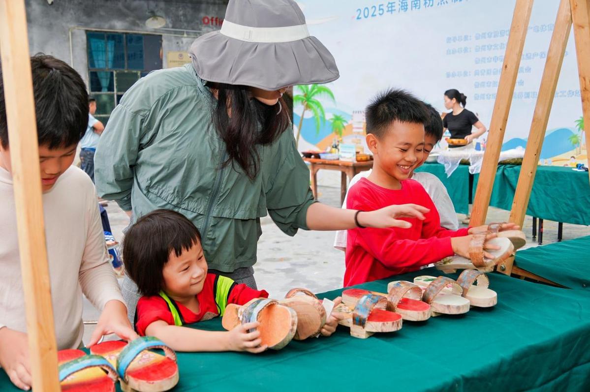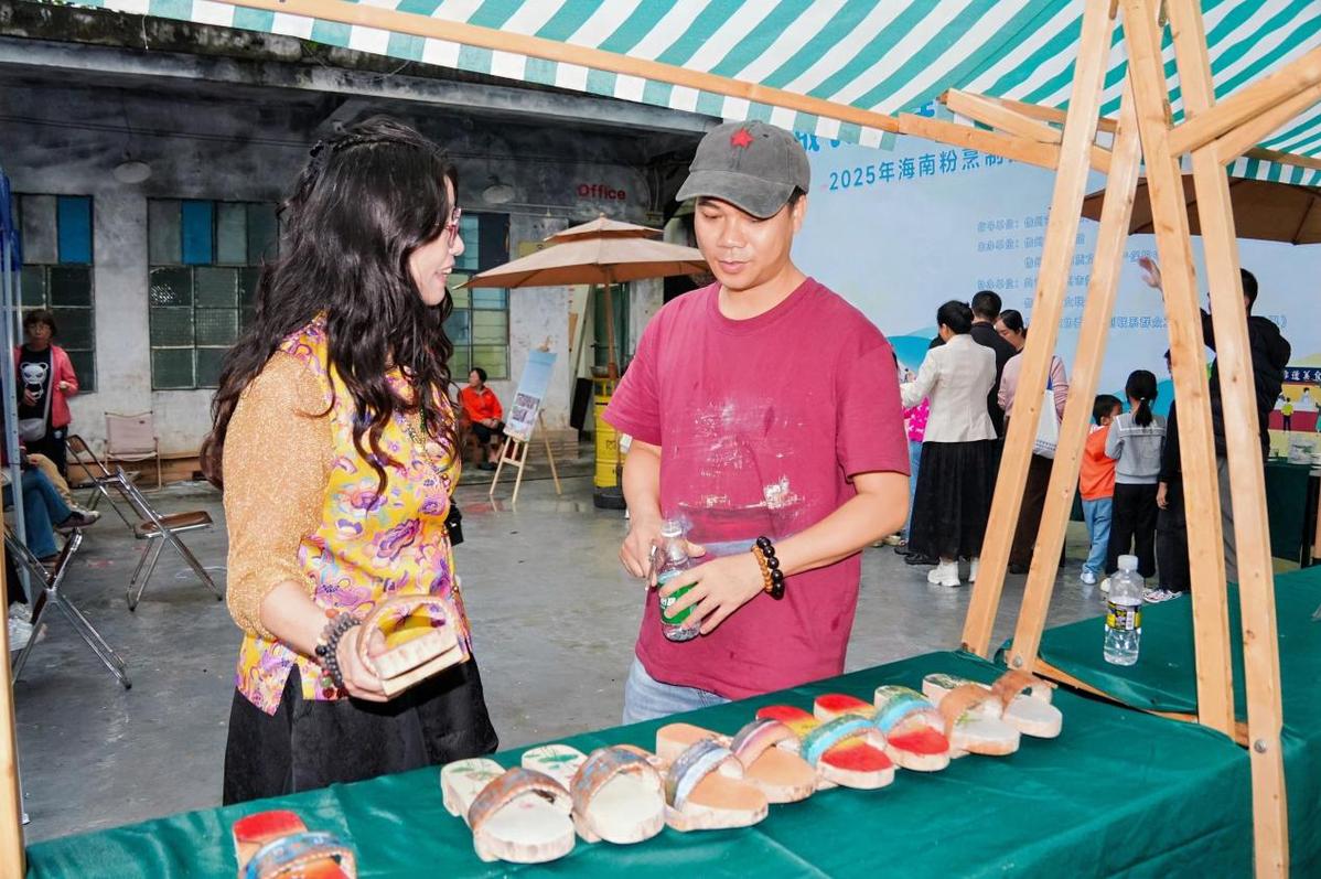 海南优秀青年画家羊小胜在活动中展示由本人创作的“东坡木屐”文创产品,木屐鞋面绘以海南风情的椰子树和非遗美食图案。他说,这不仅是传统工艺与地方特色元素的结合,更旨在让非遗文化与传统技艺以更鲜活的方式走进当代生活。
