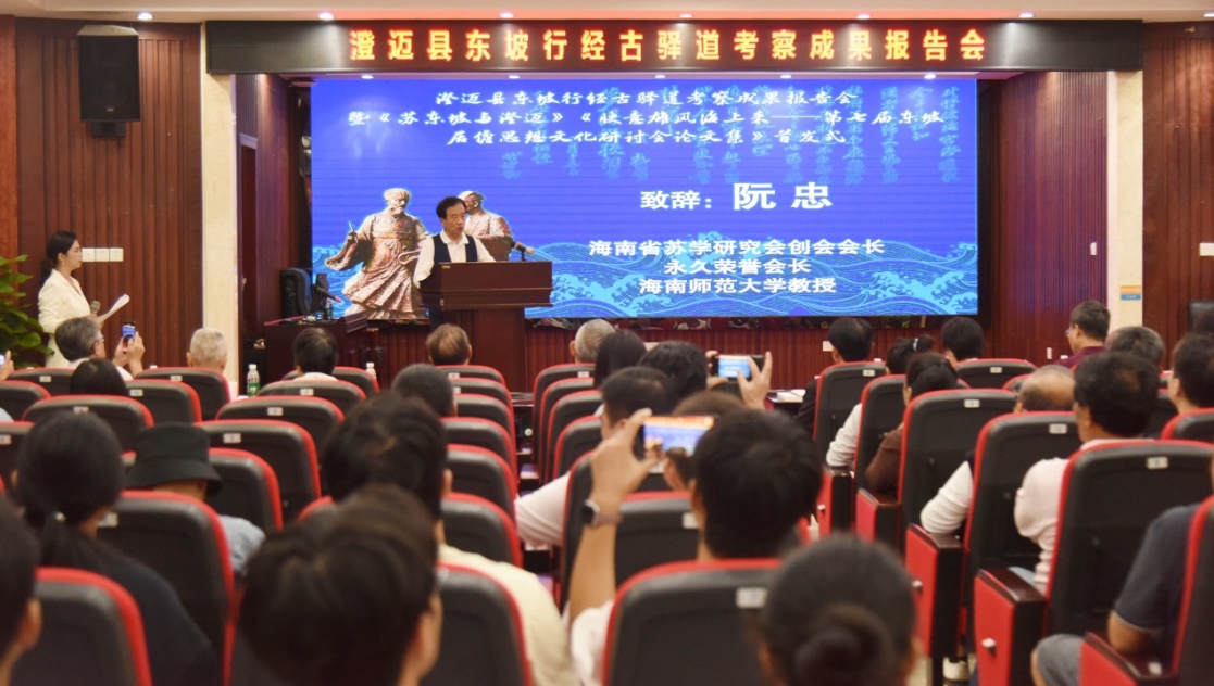 第三届中国(海南)东坡文化旅游大会将于11月8日在澄迈县开幕之际,11月2日,海南省苏学研究会在海南中学举办“东坡行经古驿道考察成果报告会暨《苏东坡与澄迈》《快意雄风海上来——第七届东坡居儋思想文化研讨会论文集》首发式”,集中发布东坡行经澄迈古驿道考察成果及两部学术著作,为海南东坡文化研究与传承再添新力。海南省旅游和文化广电体育厅党组成员、副厅长苏启雅,澄迈县副县长柴淼,中国苏轼研究学会副会长、海南省苏学研究会理事长李公羽等出席活动。