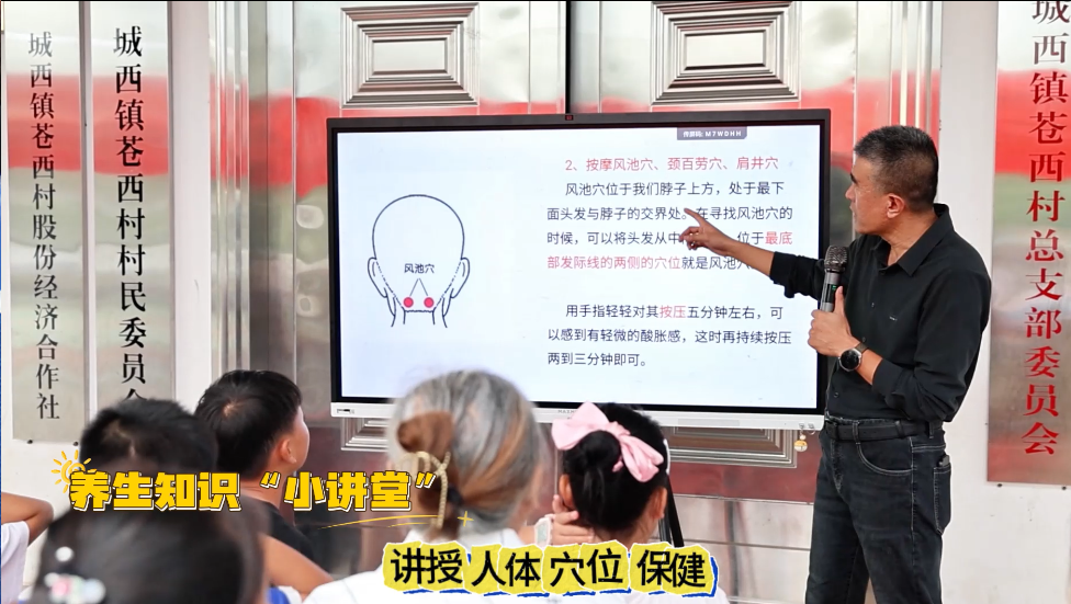 随后,海南医科大学中医学院刘洪波副教授现场讲授肩颈穴位按摩知识,并带领居民一起寻找关键穴位,体验简单有效的自我保健方法。讲座结束后,医生团队现场开展义诊,为居民提供健康咨询,真正实现了“知识送到手,服务暖到心”。