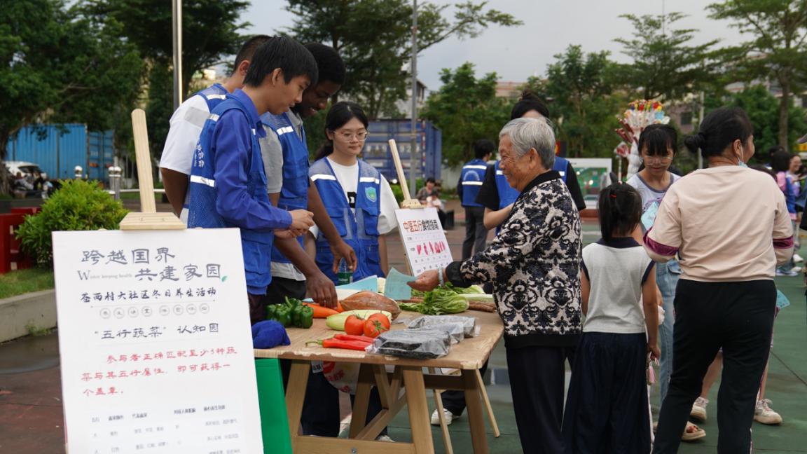 11月8日下午,在海口市龙华区委组织部、区民政局和城西镇委镇政府的指导下,海南医科大学“跨越国界·共建家园”国际青年志愿服务团队联合苍西村党总支委员会、苍西村大社区综合服务中心,携手海口市红十字会救在身边志愿服务队,举办了一场集跨文化交流与健康服务于一体的冬日养生主题活动。来自中国、巴基斯坦、老挝、缅甸、加纳、坦桑尼亚等多国的青年志愿者,以中医养生智慧为纽带,融合世界各地健康传统,为社区居民送上沉浸式健康体验,搭建起跨国界、心连心的文明交流桥梁。