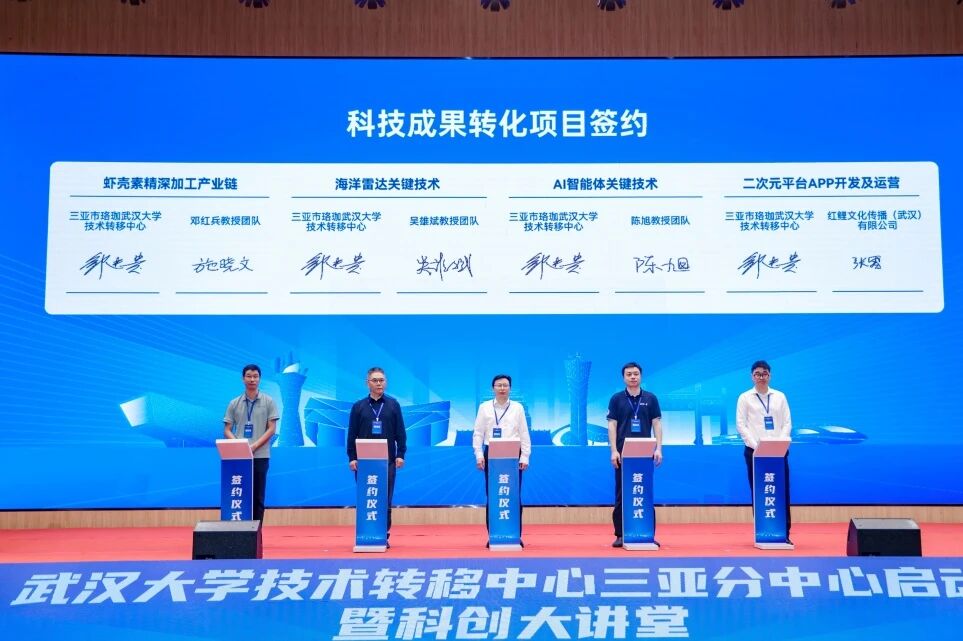 现场,武汉大学技术转移中心三亚分中心分别与入驻科技成果转化科研团队、创新场景培育合作伙伴及科创基金合作伙伴签约。