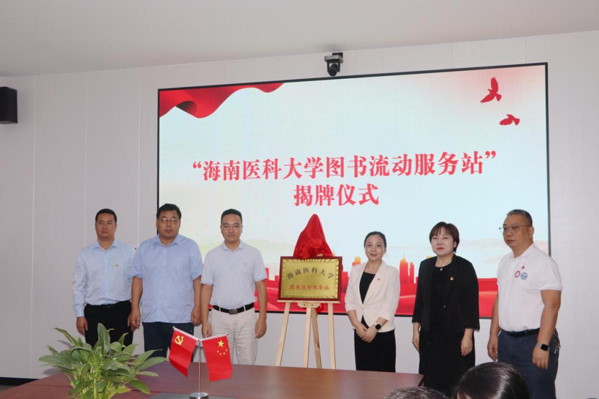 (双方为“海南医科大学图书服务流动站”揭牌)