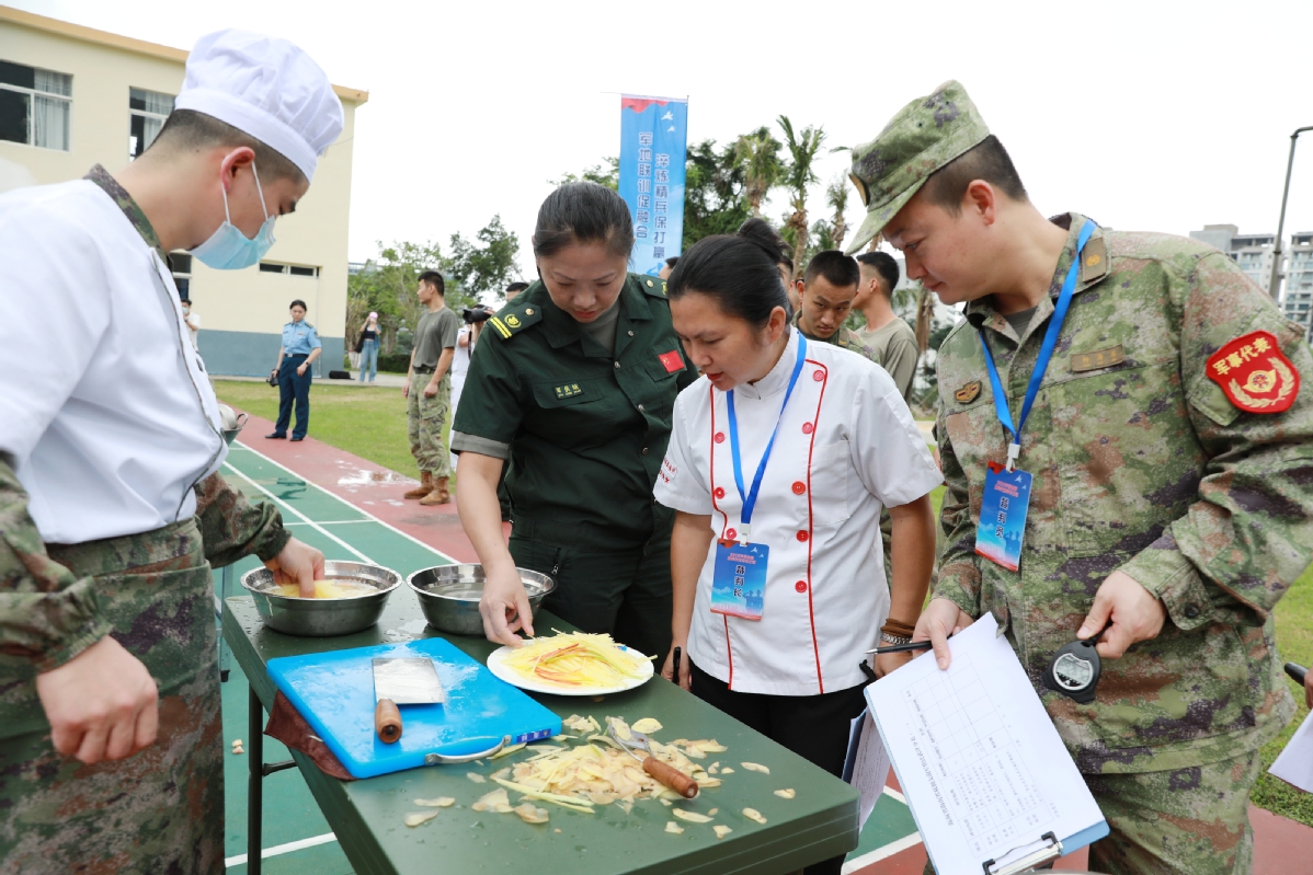 军供保障比武环节同样亮点纷呈。军供队员与部队炊事人员同台竞技,围绕“给养单元炒制菜品”任务,严格按照野外保障设点、食谱制定、食材采购、野外制餐、打包分装等全流程操作,洗切炒煮各环节有条不紊,在规定时间内圆满完成饭菜制作与分装,充分展现了过硬的专业技能和严谨的工作态度,让现场参与者对军供保障工作有了更直观深入的了解。