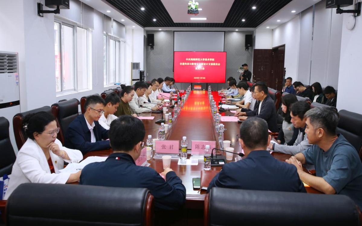 教育部中华优秀传统文化基地、海南省非遗创新与研究院、海南黎锦产业联盟、海南省非遗传承人代表,学校相关职能部门负责人和美术学院党政领导班子成员参加会议。