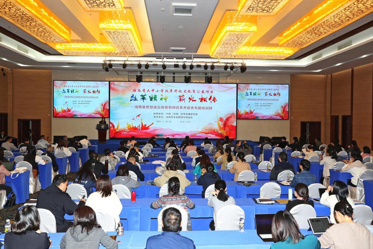 改革开放是当代中国最鲜明的特色,也是我们党最鲜明的旗帜。11月29日,由中国(海南)改革发展研究院指导,海南改革发展研究基金会主办的“改革精神 薪火相传——海南省思想政治教育教师改革开放史专题培训班”在中改院学术交流中心开班。来自海口、三亚、文昌、琼海、陵水、万宁、东方、澄迈等8个市县28所高校、3所中学的100多名教师参加此次公益培训。