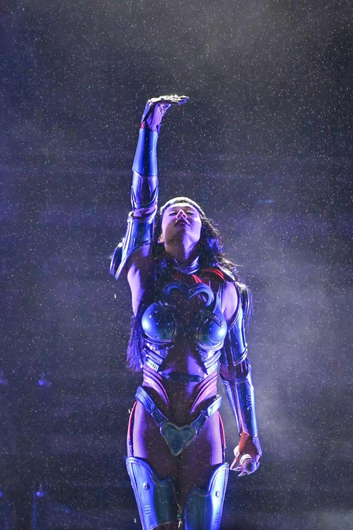 当晚,Katy Perry以标志性活力造型登场,《Roar》《Teenage Dream》《Firework》等公告牌冠军单曲接连唱响,熟悉旋律引发全场万人大合唱,整齐歌声与欢呼声回荡体育场。《Firework》演唱时,体育场上空绽放的绚丽烟花与椰城夜空相映,将氛围推向顶点。