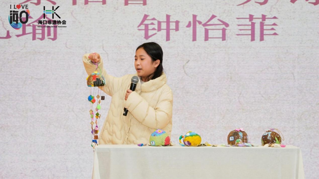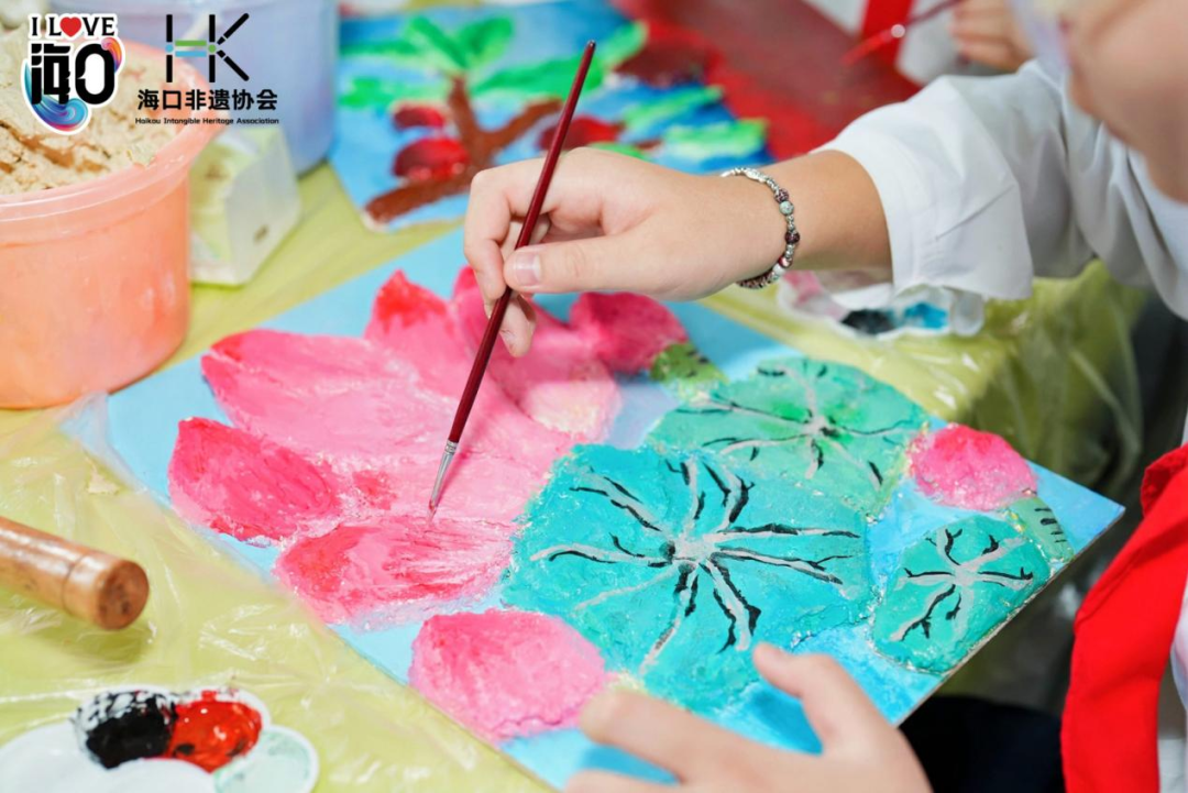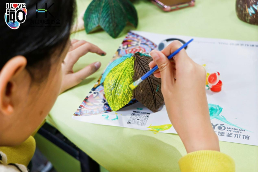 海南省农垦直属第一小学的孩子们在海南非遗艺术馆老师引导下,以贝壳为原料发挥想象,创作独一无二的贝壳画;海口市第二十五小学的学子手握抹刀,在文昌灰塑传承人的点拨下,用灰泥揉、搓、拍、捏,勾勒出鲜活的花鸟纹样;海口市第二十六小学的学生则以椰壳为“画布”,在省级椰雕传承人柯秋枫的指导下,将创意融入这项有着“天南贡品”美誉的传统技艺中。从课堂讲解到亲手实践,孩子们在触摸、体验、创作中,读懂非遗背后的文化密码,感受传统技艺的独特魅力。