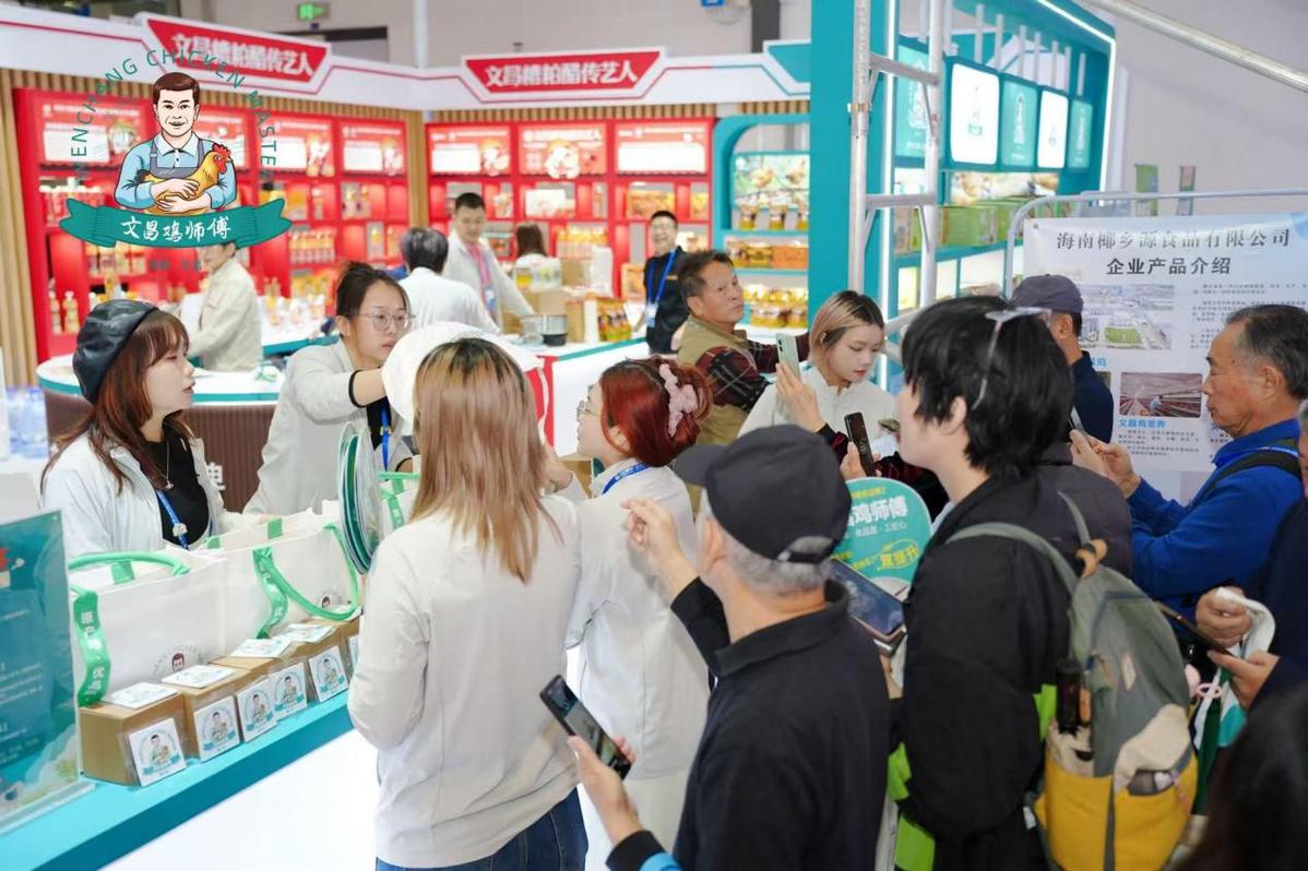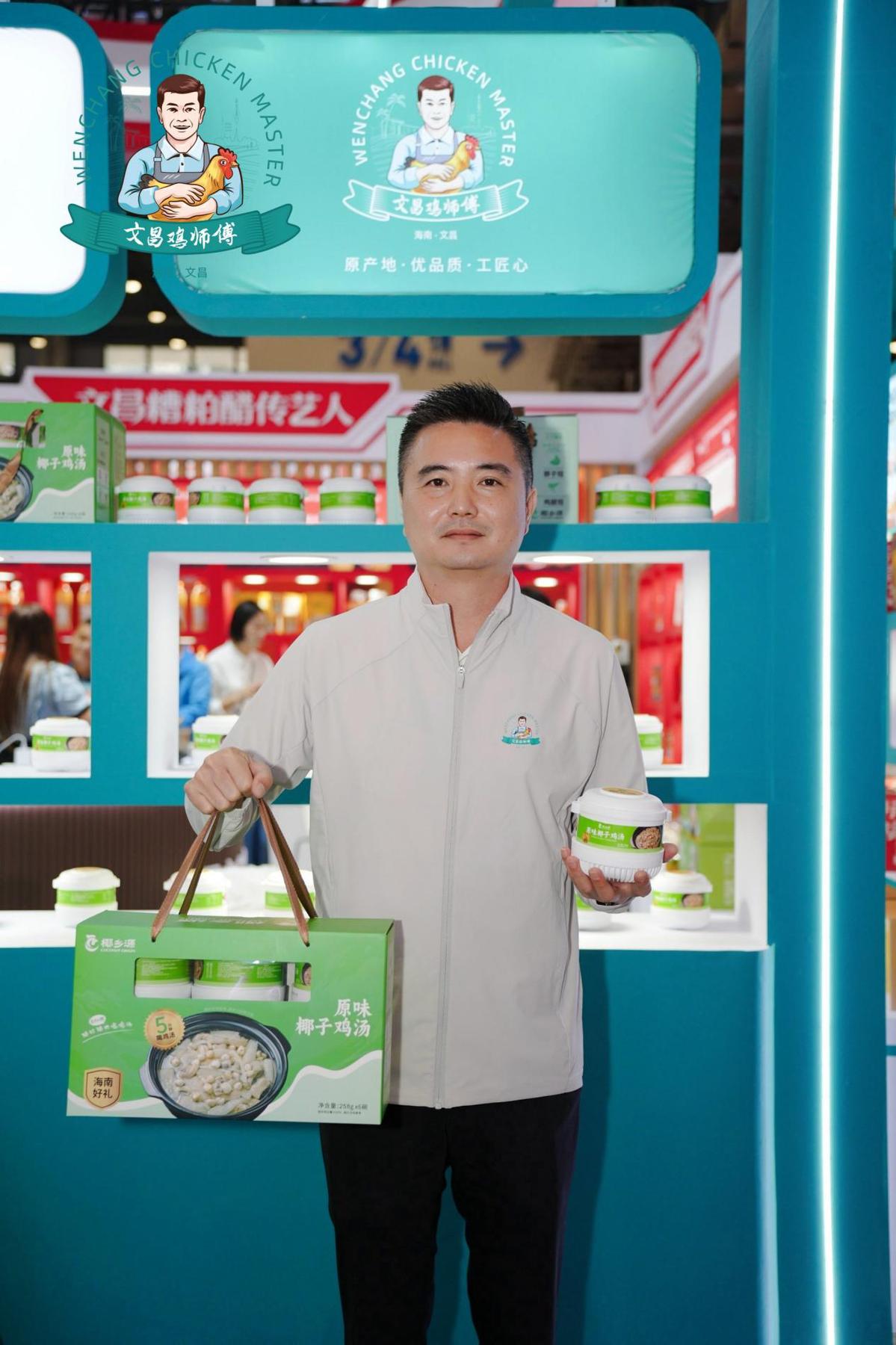 展会现场,“文昌鸡师傅”展区以“原产地・优品质・工匠心”为核心理念,通过图文、实物、视频及现场演示等多元形式,全景呈现文昌鸡从原种保护、生态养殖、标准化加工到品牌餐饮的全产业链发展图景。展区陈列的白切、盐焗、椰子鸡等风味生鲜产品,直观展现了品牌在标准化、产业化建设上的扎实成效,让观众深入了解文昌鸡作为“国家地理标志产品”与“非物质文化遗产”的双重价值,以及劳务品牌如何将传统技艺转化为带动就业、助力乡村振兴的产业动力。