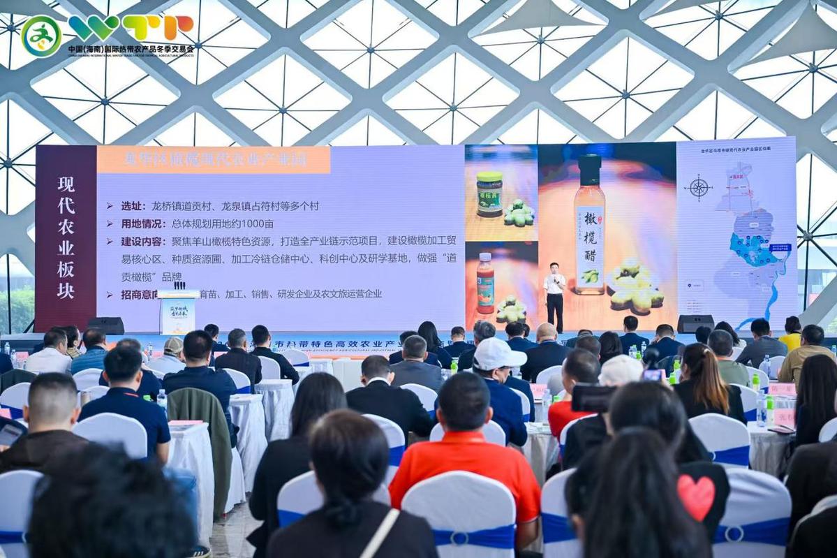 海口市人民政府党组成员、副市长徐健超在致辞时介绍,近年来,海口深入贯彻落实省委、省政府关于“农业科技创新和开放合作双高地”的工作部署,依托万年火山富硒土壤与热带生态禀赋,走出特色鲜明的农业高质量发展之路。品牌效应持续放大,累计培育“两品一标”农产品76个、国家地理标志产品21个,数量均居全省前列。招商成效持续向好,2025年已落地签约项目40个、总投资42.96亿元,为农业产业链注入强劲动能。下一步,海口市将深挖海南自贸港政策红利,以产业链强链补链延链为主线,聚焦特色高效种植、设施农业、现代渔业、种业、农产品精深加工、市场渠道拓展、品牌价值提升等核心板块精准招商。同时,提供用地保障、金融支持、政策兑现全链条服务,为投资者打造放心创业、安心发展的一流营商环境。