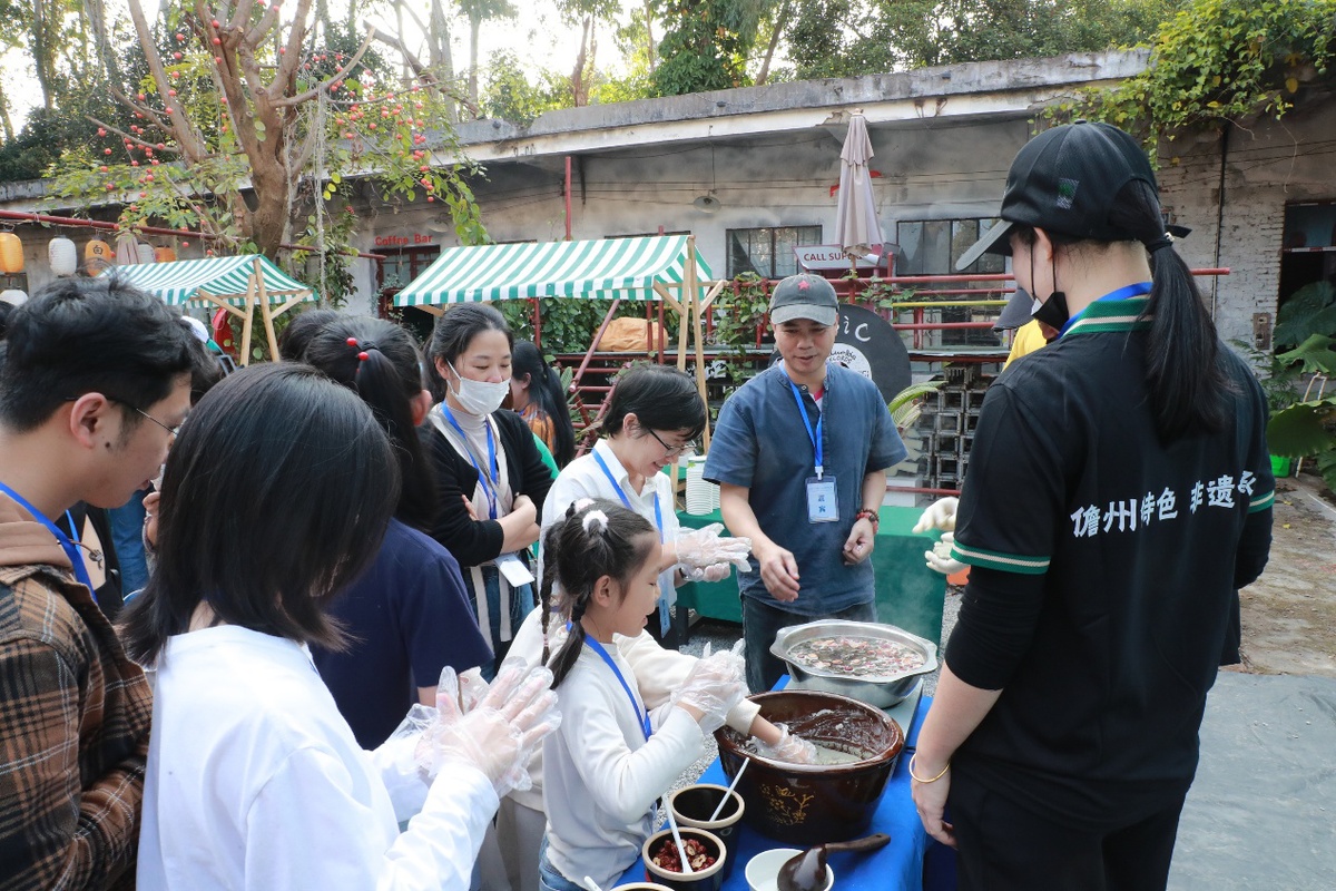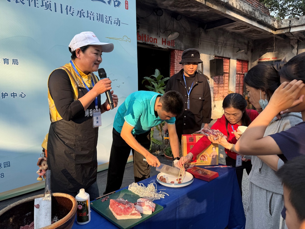 在各技艺教学区,非遗传承人现场示范、手把手授课,细致讲解工艺要点与文化内涵,让学员全方位感受非遗技艺的独特魅力与地方饮食文化的深厚底蕴。