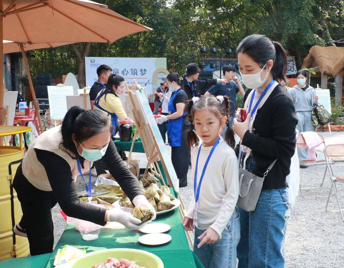 下午14时30分,青年文化创意园内香气四溢。在儋州粽子手工技艺制作区,儋州粽子手工技艺传承人钟春桃正手把手教授学员包裹粽子的技巧。“粽叶要叠成漏斗状,糯米压实后裹紧棉线,这样煮出来的粽子才棱角分明、紧实不散。”她一边讲解,一边示范填馅、折叠、捆扎的全过程。儋州粽子以鲜香馅料与软糯口感闻名,从选叶、淘米到腌制肉馅,每一道工序都凝结着地方饮食文化的智慧。学员们围坐案前,专注模仿,不时向传承人请教细节。