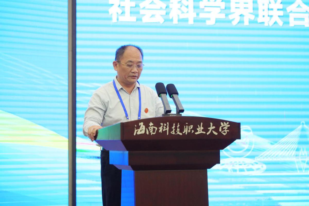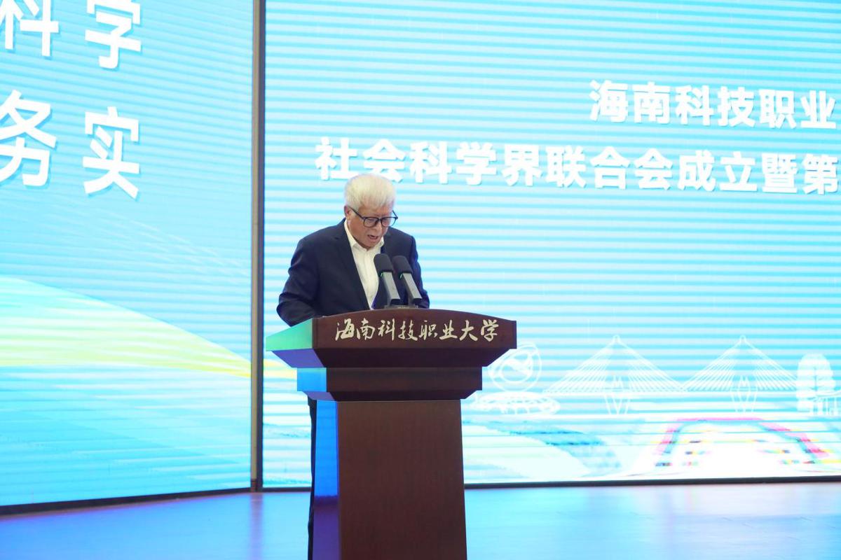杨海在致辞中表示,校社科联的成立是顺应时代潮流、回应发展需求的战略举措,为学校社科工作搭建了交流合作与干事创业的广阔平台。他提出,要坚守政治引领,将社科研究深度融入党和国家事业大局,确保发展方向不偏航;要立足自贸港建设实际开展靶向研究,让论文扎根海南大地、以成果服务实践发展;要凝聚各方人才形成合力,主动对接省社科联、兄弟院校及科研机构,通过举办高水平学术活动打造特色研究品牌,持续提升学校在省内外社科领域的影响力。