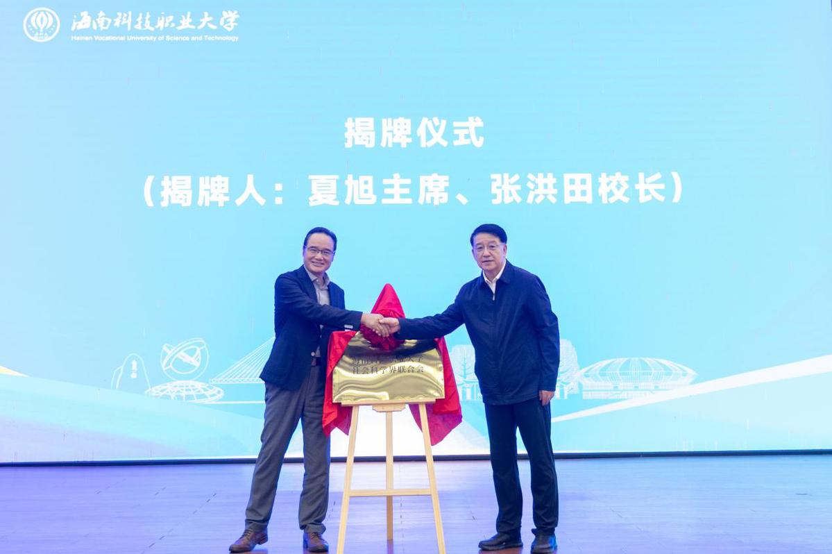 随后,夏旭与张洪田共同为“海南科技职业大学社会科学界联合会”揭牌。