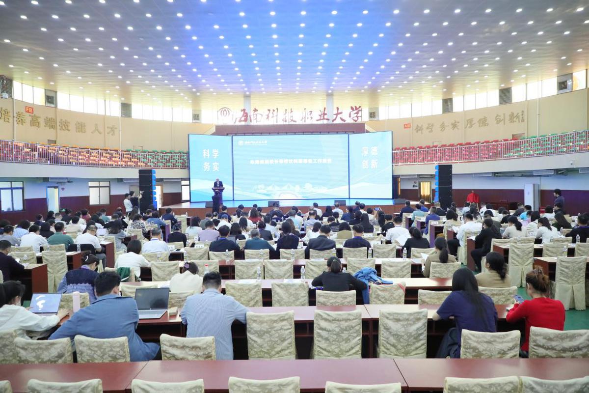 12月8日,海南科技职业大学社会科学界联合会成立大会暨第一次会员代表大会在金鸟巢活动中心举行。海南省社科联党组书记、主席夏旭,海南科技职业大学校长张洪田,校党委书记、政府督导专员杨海,副书记、执行校长郑兵出席会议,省社科联相关部门负责人及学校近200名代表参会。副校长牟海维主持会议。
